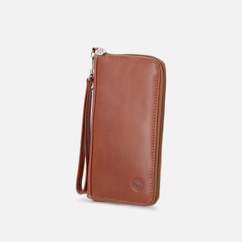 "alt": "Porta Pasaporte de cuero vacuno con cierre en internet",